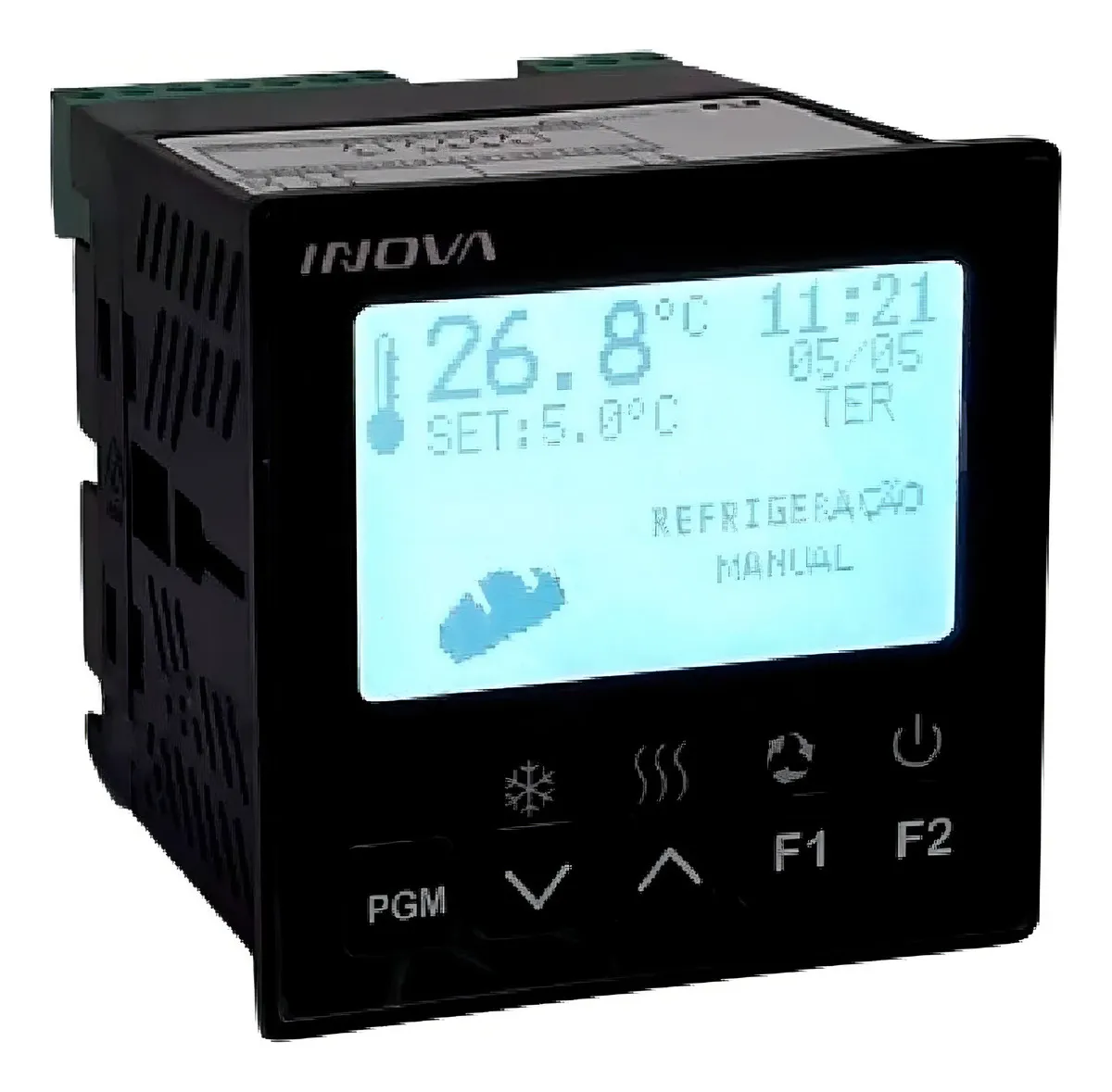 Controlador de Temperatura e Tempo Inova INV-YB3-01-N1-H, indicado para câmaras climáticas e de fermentação de pães (padeiro noturno). Compatível com equipamentos das marcas Frilux, Venâncio, G.Paniz, Progás, entre outras. Substitui os modelos INV-54101 e INV-54109 (descontinuados).