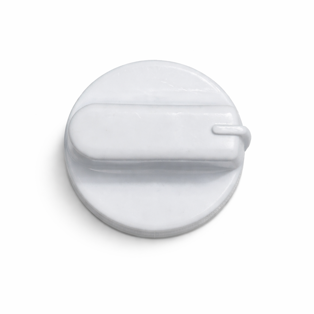 Manipulador (botão) injetado na cor branca, modelo NEW 13, utilizado para controle de fogões e cooktops. Fabricado em plástico resistente por processo de injeção, oferece boa durabilidade, encaixe preciso no eixo da válvula de gás e fácil manuseio no acionamento das chamas.